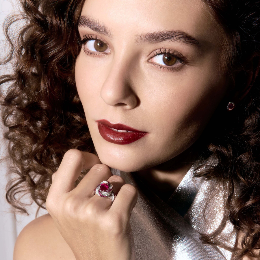 Пример: изысканное кольцо от Mousson Atelier из коллекции High Jewellery с рубином весом 2,34 карата в окружении сияющих бриллиантов.