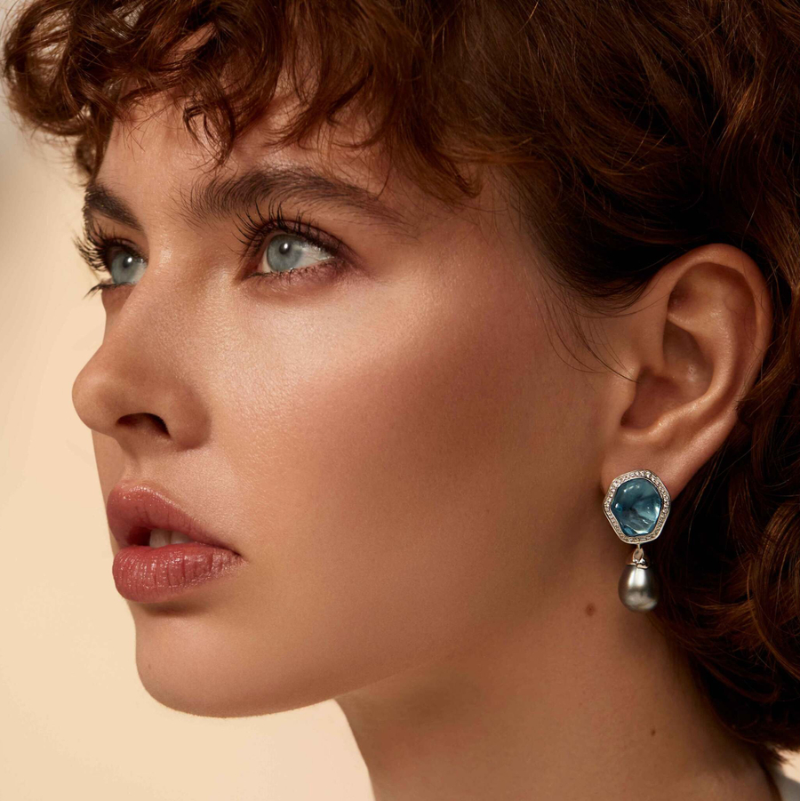 Особенными талисманами для Рыб станут серьги Mousson atelier из коллекции Spectrum из белого золота с серо-голубыми аквамаринами барочной формы, бриллиантами и натуральными таитянскими жемчужинами. Особенность золотых сережек в том, что нижнюю часть можно отсоединить, чтобы менять свой образ в течение дня.