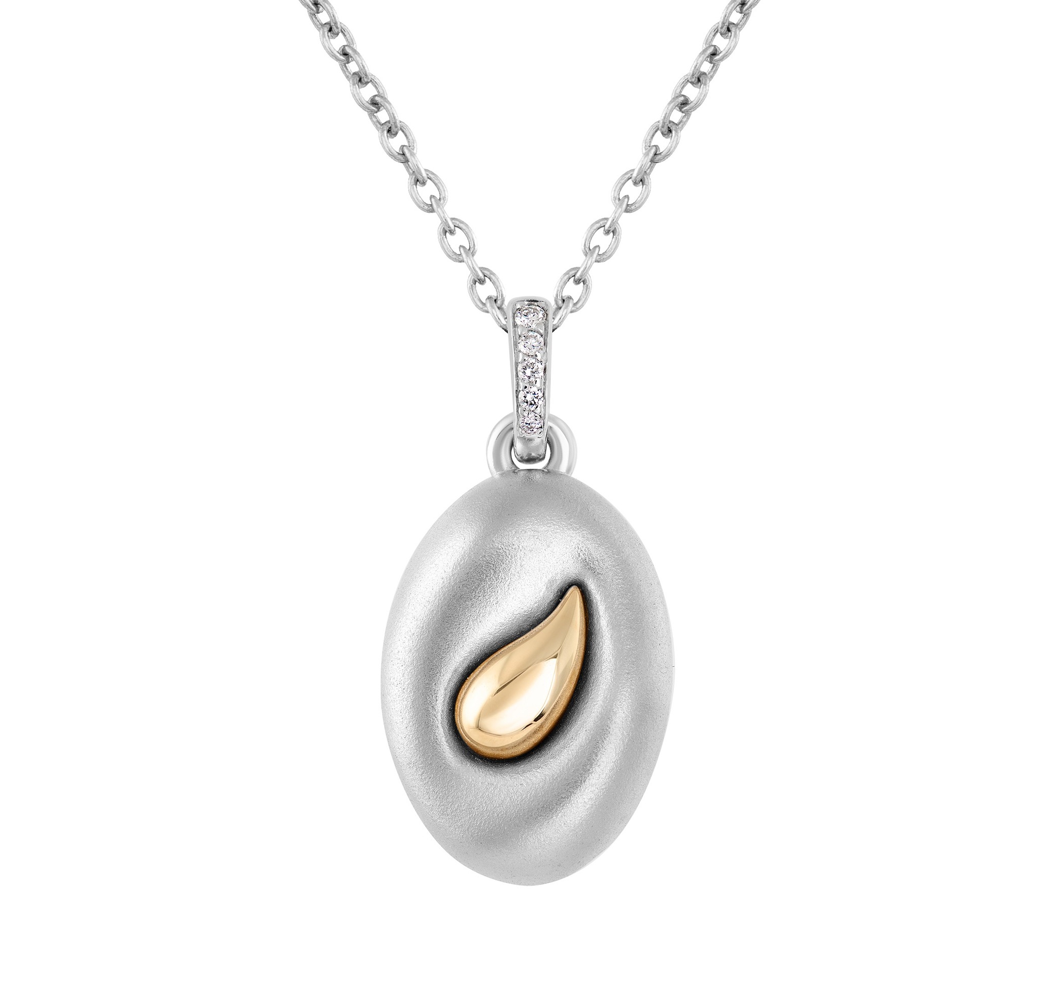 Кулон из нашей самой ароматной коллекции Coffee Dew выполнен из белого и жёлтого золота 750-й пробы и украшен блестящими бриллиантами. Уникальность украшения подчёркивается комбинацией двух текстур - матового и глянцевого золота.