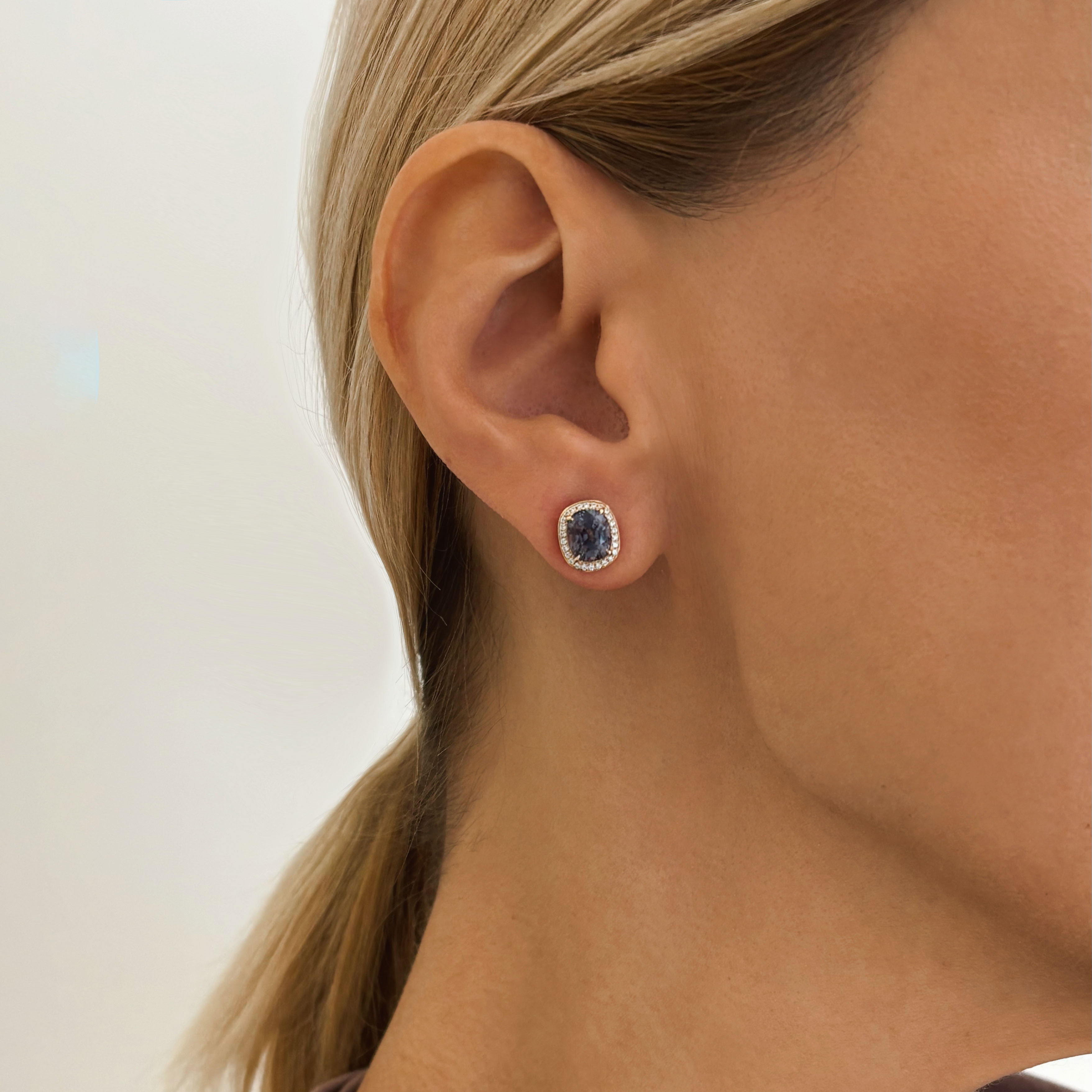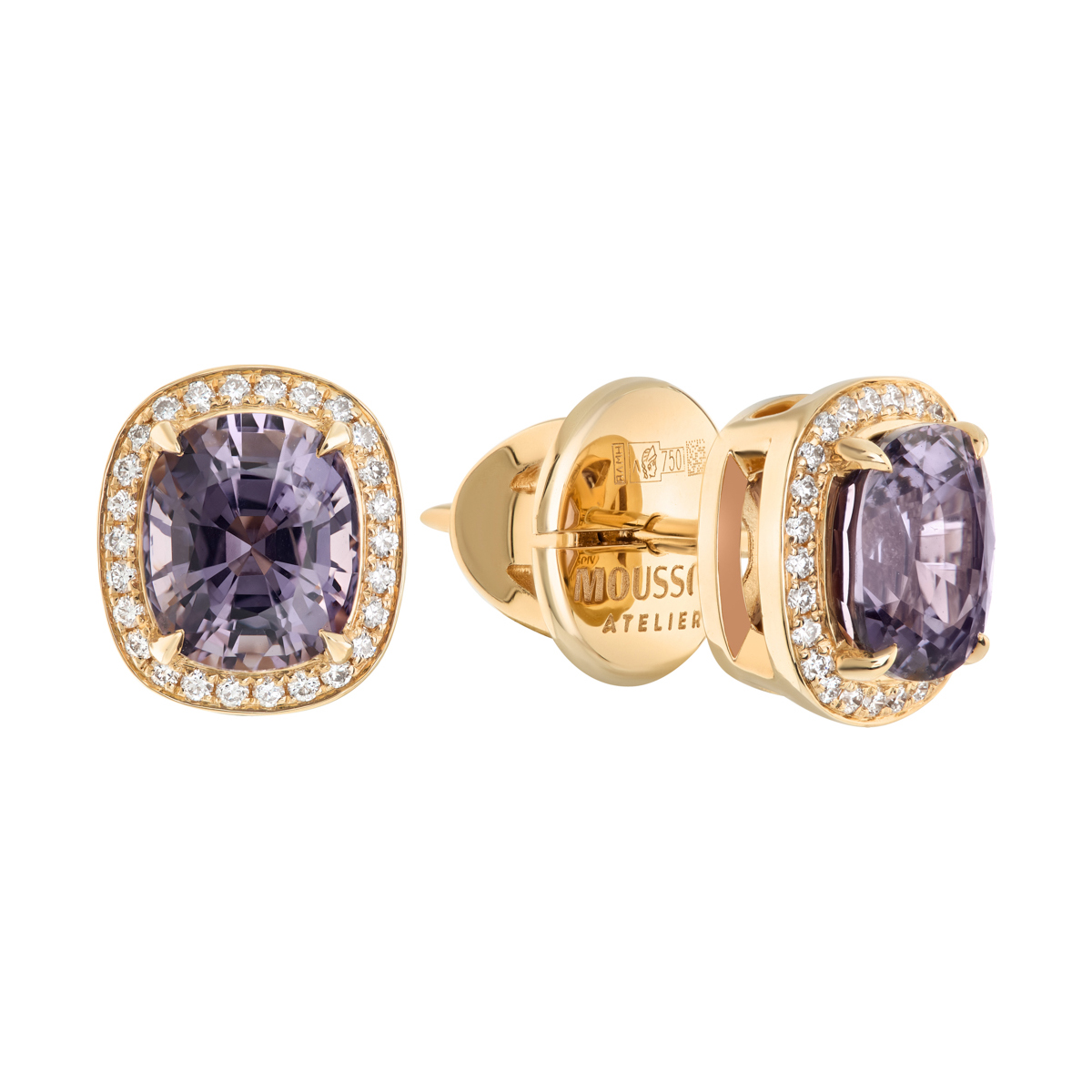 Серьги-пусеты из желтого золота 750 пробы с эффектным сочетанием камней — шпинель весом 3,02 карат и элегантные бриллианты. Блеск белого и желтого цветов вплетается в таинственный фиолетовый оттенок, создавая неповторимый образ. Изящно и утонченно – идеальное дополнение к образу современной женщины.