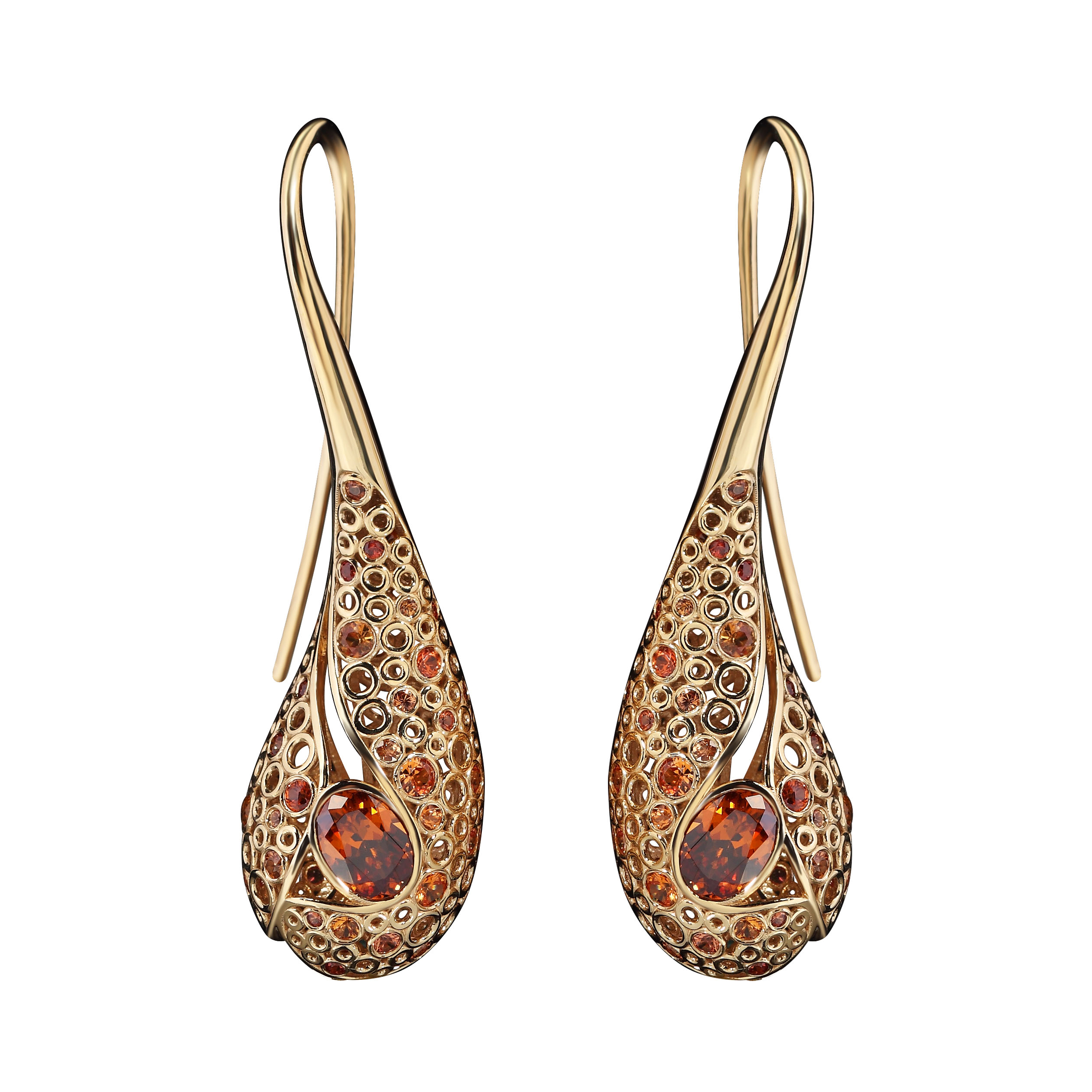 Серьги из желтого золота 750 пробы с цирконом и оранжевыми сапфирами созданы для истинных ценительниц элегантности! Коллекция "Bubbles" – это гармония цвета, стиля и изысканности.