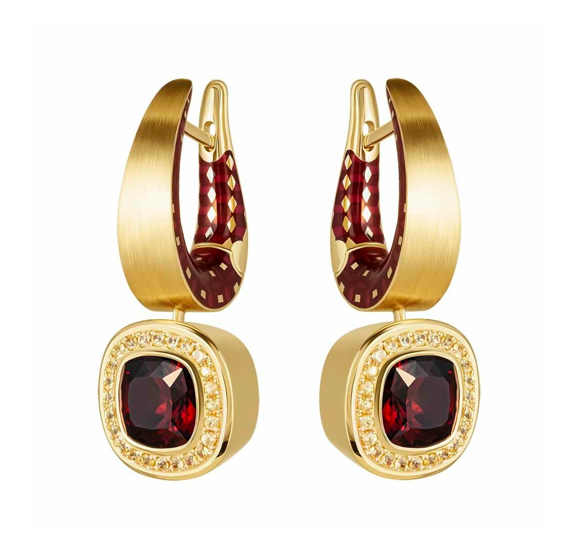 Серьги c Гранатом и жёлтыми Сапфирами, Эмаль, E0176-52/16 — купить в Mousson Atelier | Серьги | Выбрать в Москве в магазине по адресу ул. Большая Дмитровка, 22 к.1