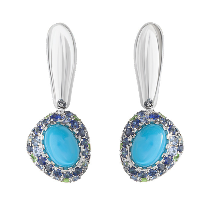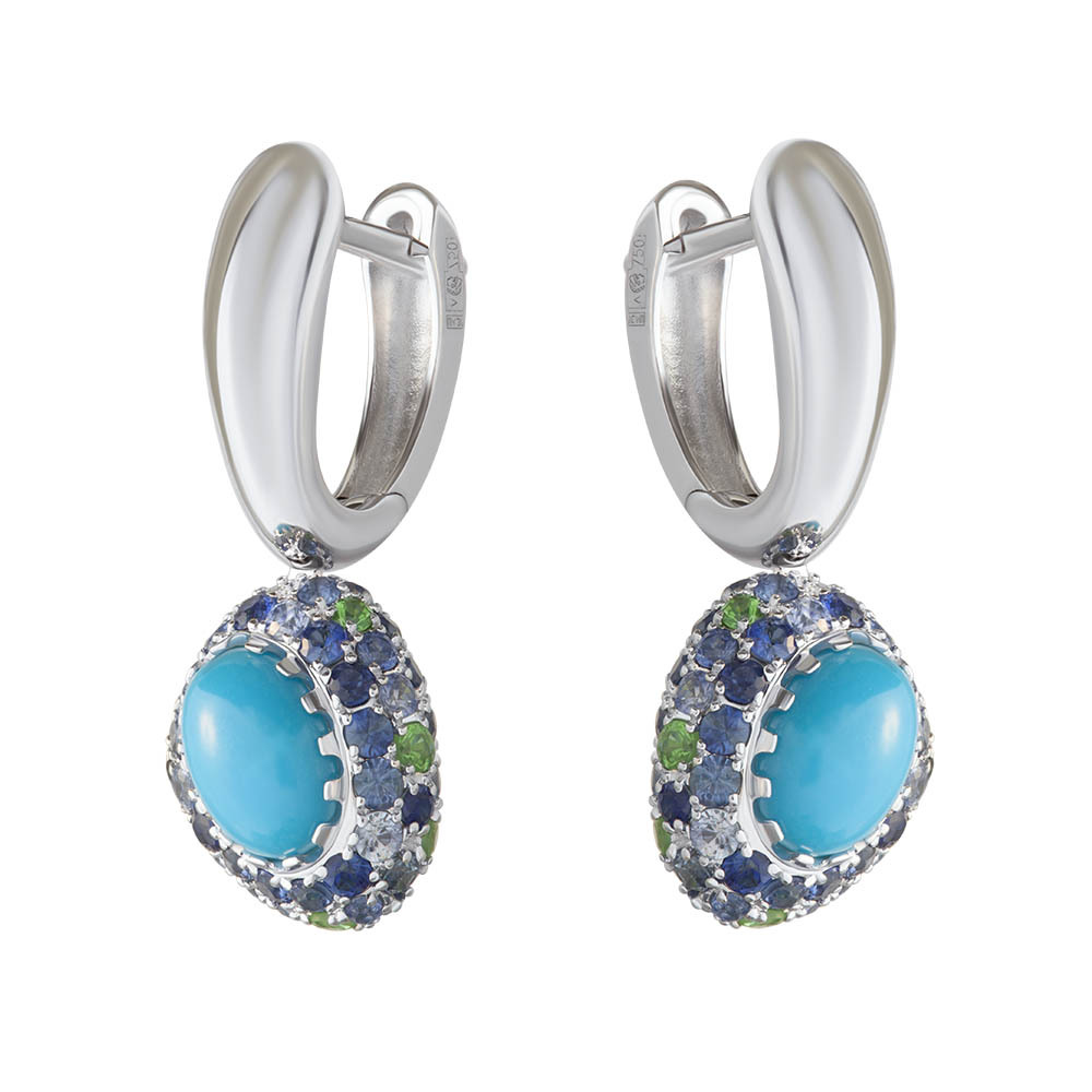 Серьги с Бирюзой, Сапфирами и Цаворитами, E0072-0/71 — купить в Mousson Atelier | каталог с ценами | Выбрать в Москве в магазине по адресу ул. Большая Дмитровка, 22 к.1