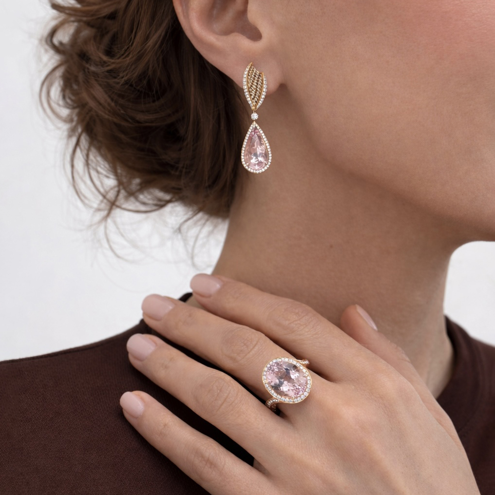 Серьги с морганитами и бриллиантами позволят Вам почувствовать себя настоящей королевой. Изысканное сочетание розового золота, блеска камней и уникального дизайна делает эту пару украшений по-настоящему неповторимой. Коллекция NEW CLASSIC подчеркнет Вашу женственность и стиль, добавив роскоши Вашему образу.