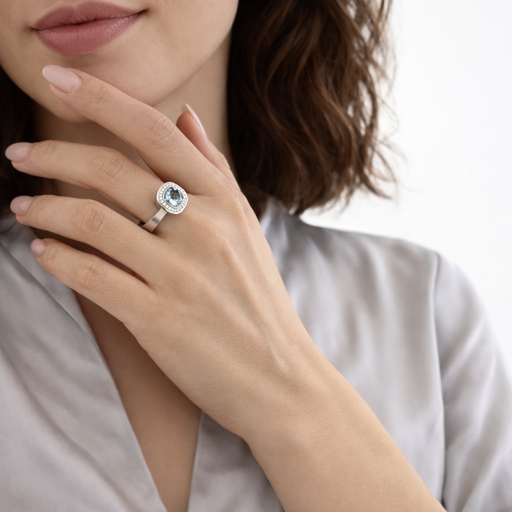 Кольцо с Аквамарином и Бриллиантами, Эмаль, R0176-52/14 — купить в Mousson Atelier | УКРАШЕНИЯ | Выбрать в Москве в магазине по адресу ул. Большая Дмитровка, 22 к.1