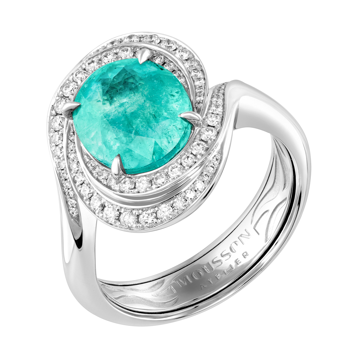 Кольцо с Турмалином Параиба и Бриллиантами, R0146-1/1 — купить в Mousson Atelier | New Сlassic | Выбрать в Москве в магазине по адресу ул. Большая Дмитровка, 22 к.1