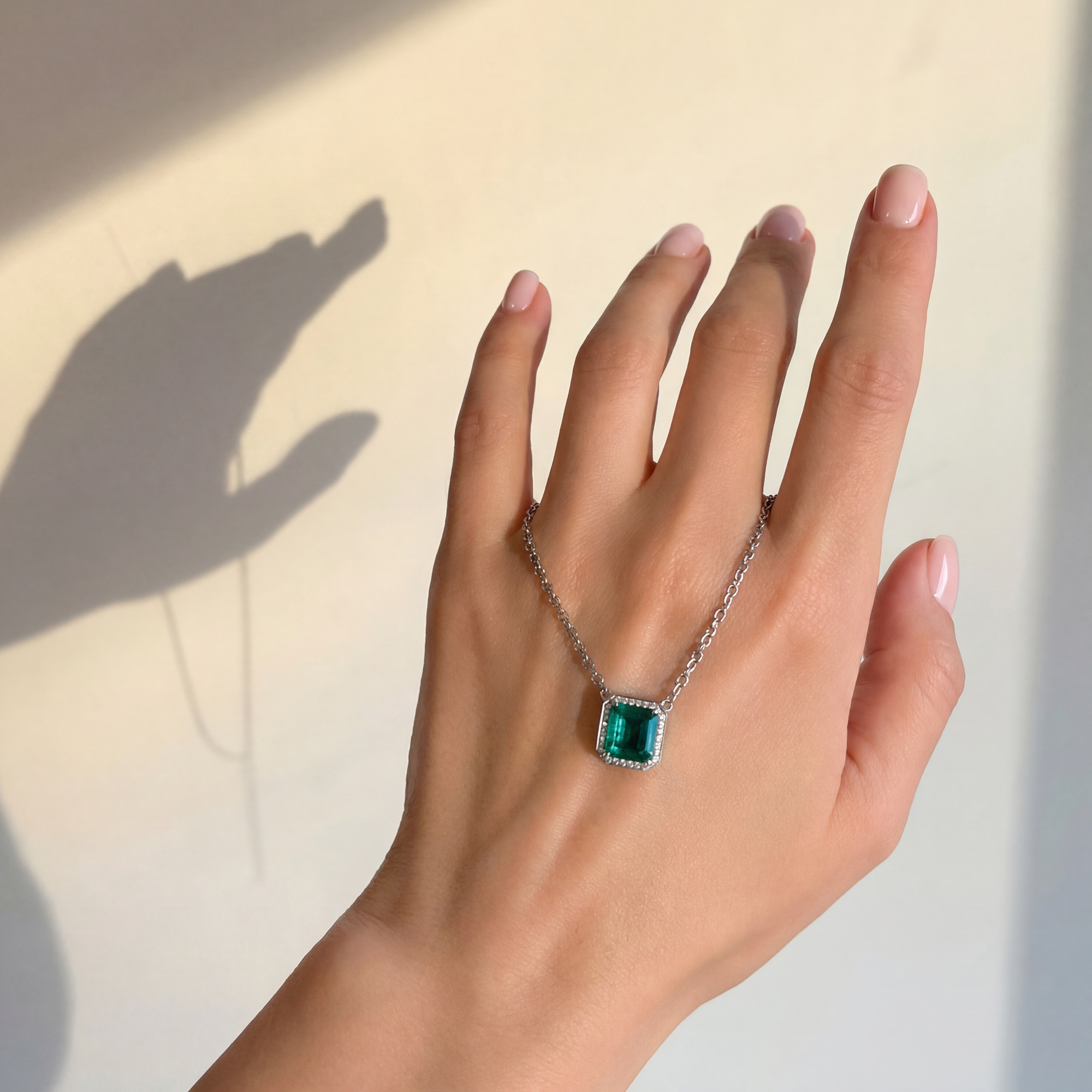 Кулон NEW CLASSIC – это сочетание утонченной красоты и современного стиля. Центральная часть украшена изумрудом весом 2,22 карата, огранка октагон, окружённым сверкающими бриллиантами. Этот кулон станет идеальным акцентом вашего образа и подчеркнёт безупречный вкус своей обладательницы.