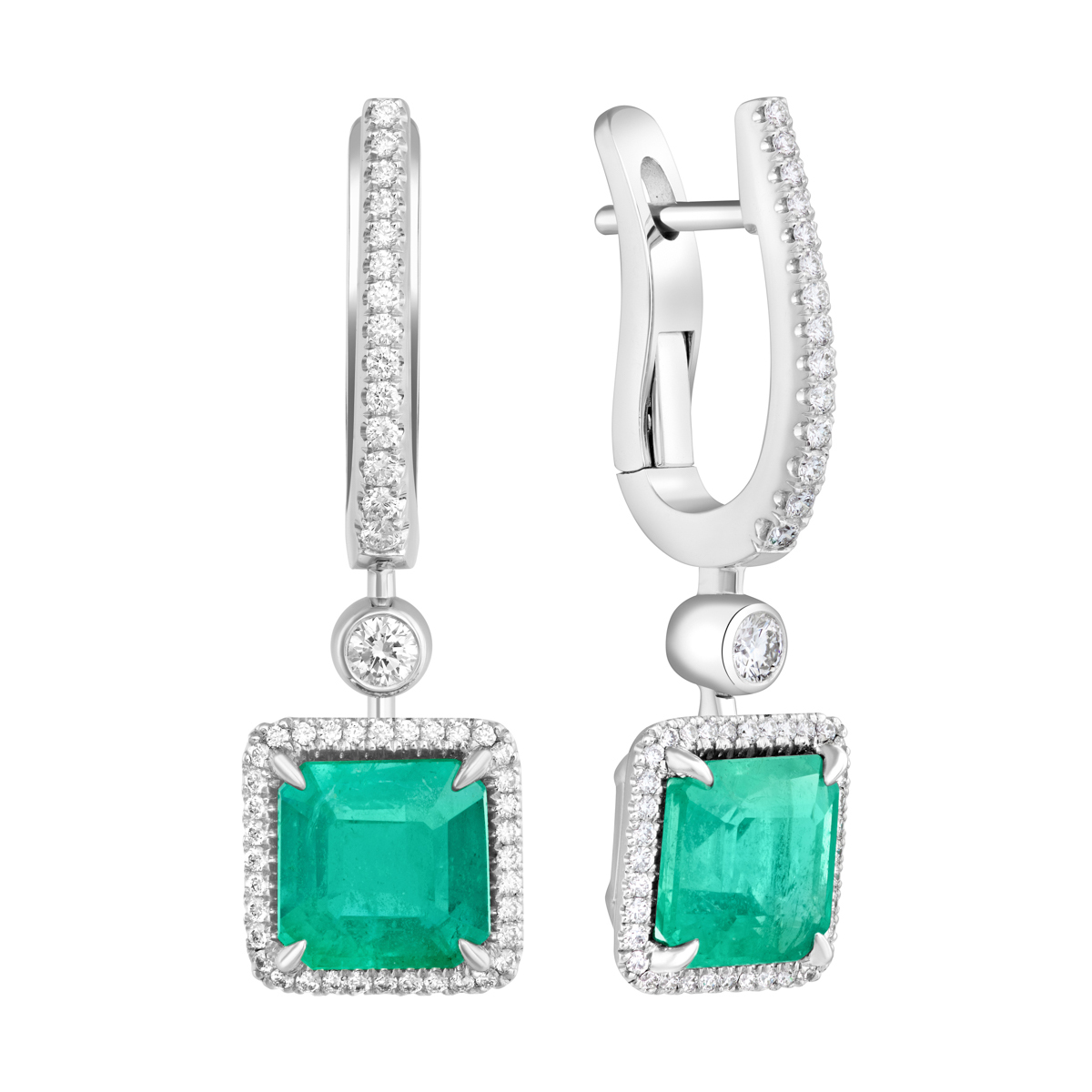 Изящные серьги выполнены из белого золота 750 пробы и украшены изумительными бриллиантами и изумрудом весом 2,32 карат. Прекрасное сочетание зеленого и белого оттенков делает это украшение стильным акцентом образа. Идеальный выбор для любительниц классики и элегантности.
