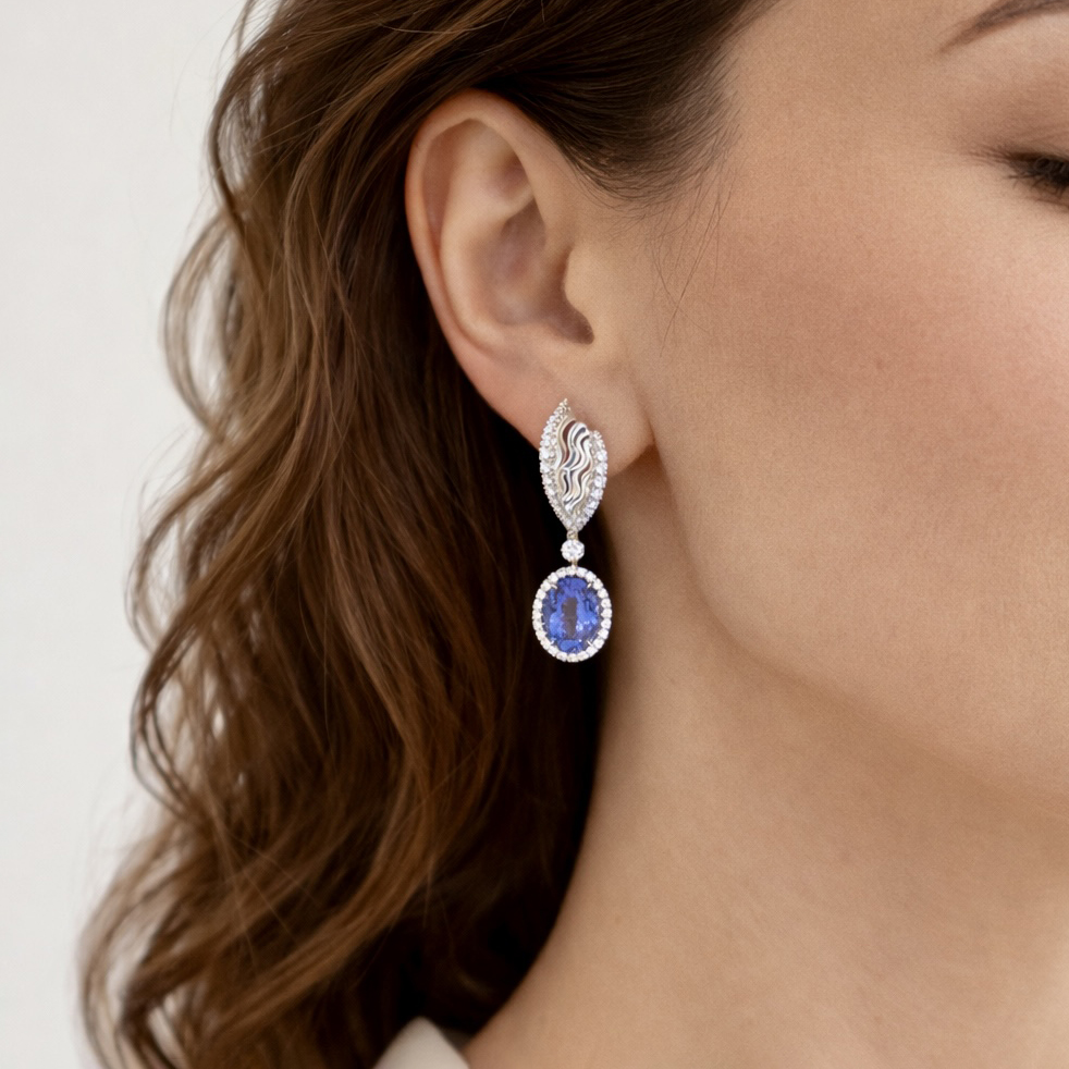 Кольцо с танзанитом и бриллиантами - это настоящая находка для ценительниц изысканных украшений! Глубокий синий оттенок танзанита и эмаль под цвет камня привлекают внимание, а блеск бриллиантов добавляет шарма.