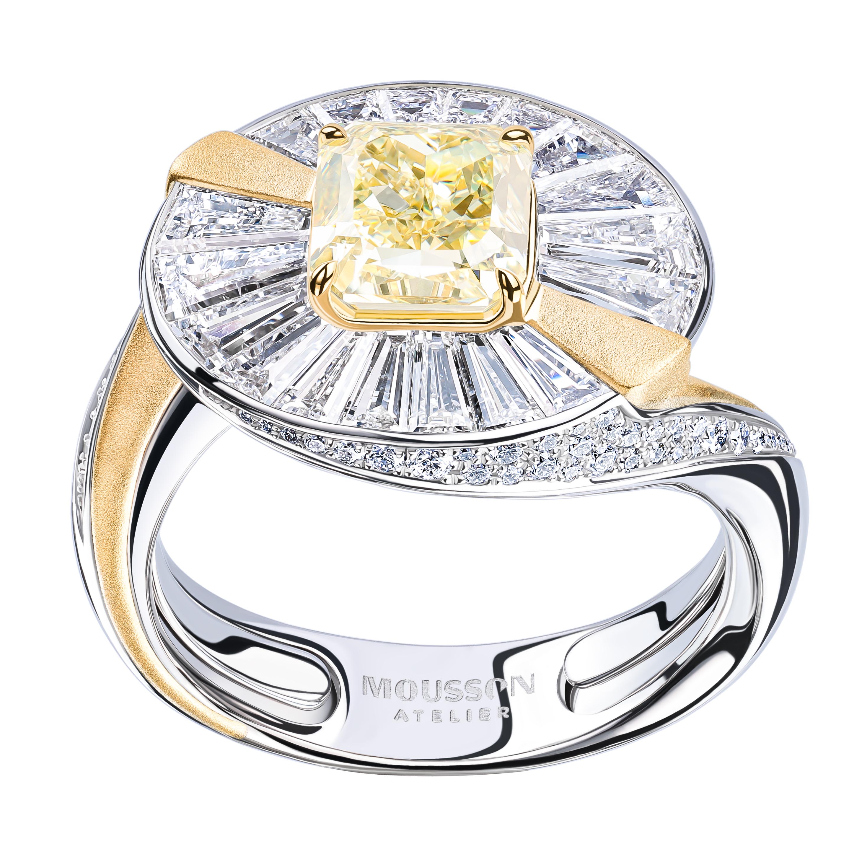 Кольцо с Жёлтыми и Белыми Бриллиантами, R0219-2/1 — купить в Mousson Atelier | Кольца | Выбрать в Москве в магазине по адресу ул. Большая Дмитровка, 22 к.1