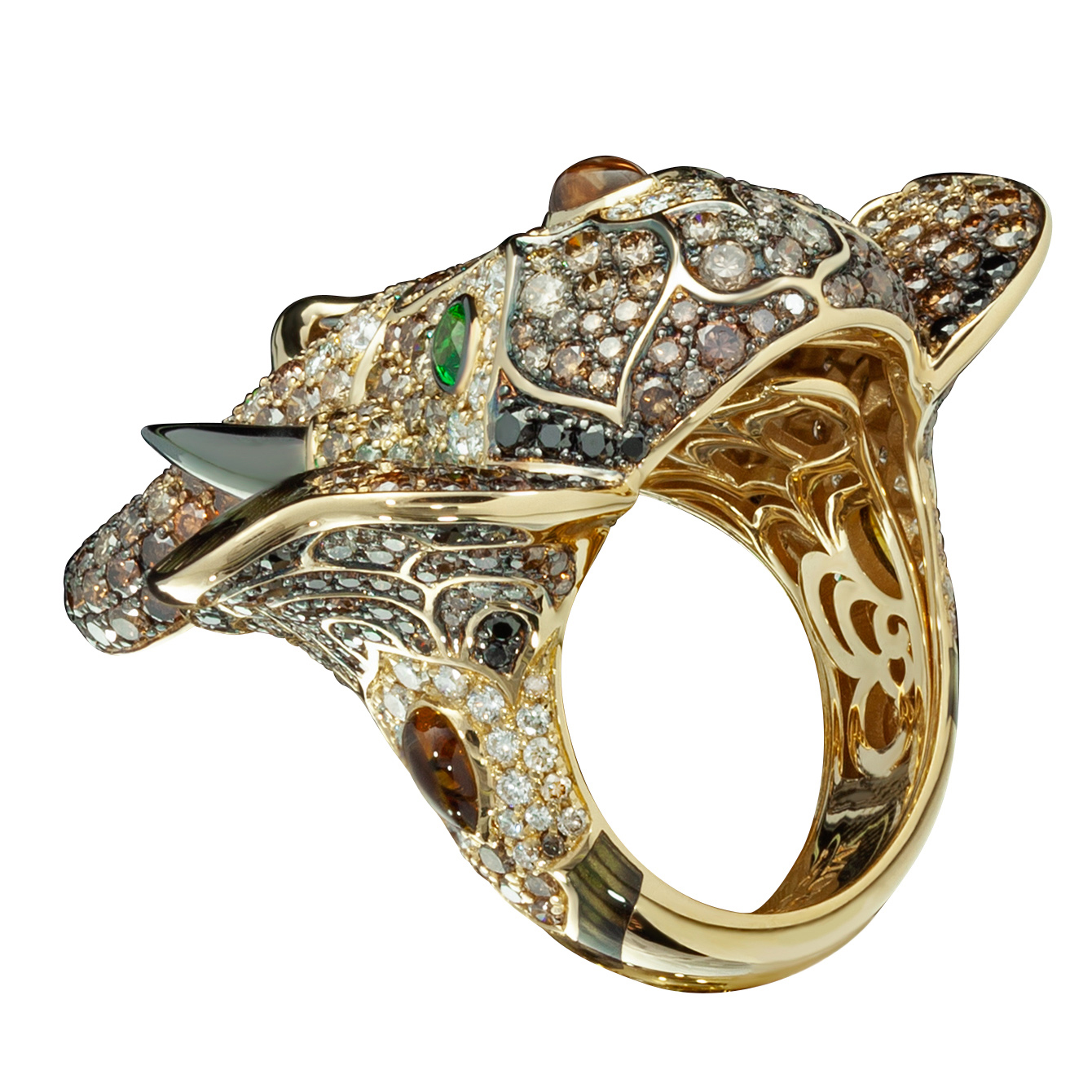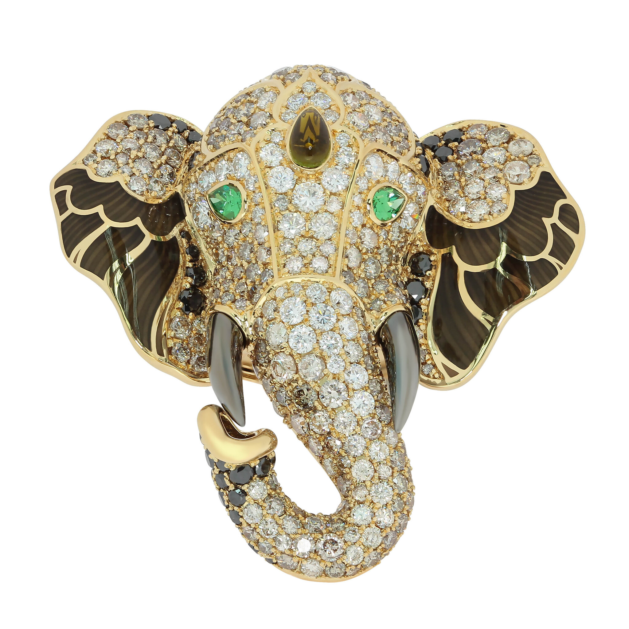 Кольцо Слон с Цаворитами, Турмалинами и Бриллиантами, R0239-1/3 — купить в Mousson Atelier | Кольца | Выбрать в Москве в магазине по адресу ул. Большая Дмитровка, 22 к.1