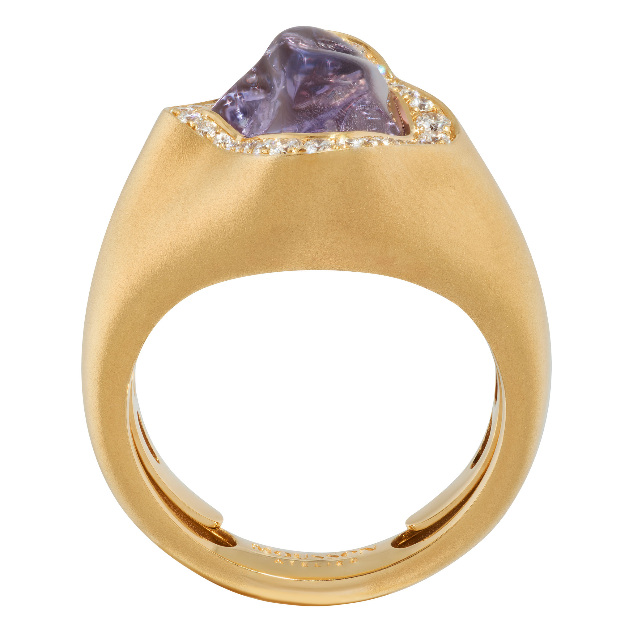 Spectrum 2025 — лимитированная капсула самой романтичной коллекции. Сердцем каждого украшения являются натуральные турмалины, аквамарины, морганиты и опалы. Ювелиры Mousson Atelier сохраняют размер и уникальную форму камней, совершенствуя их огранкой free shape. Леденцовый блеск подчеркнут бриллиантовой окантовкой и матовым золотом, а рисунок изнанки выполнен в фантазийном стиле коллекции.