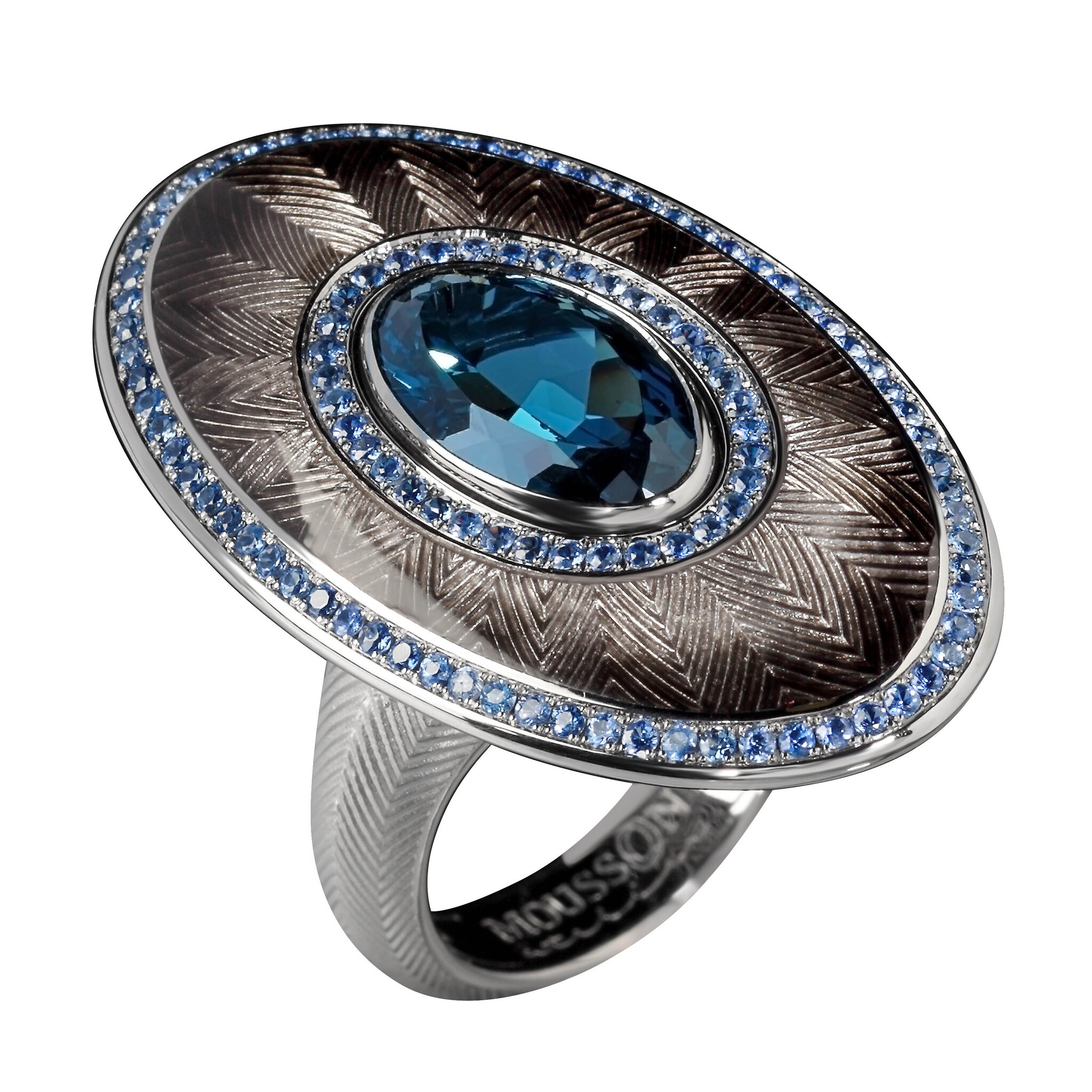 Кольцо с Топазом London и Сапфирами, Эмаль R0105-2/19 — купить в Mousson Atelier | Tweed | Выбрать в Москве в магазине по адресу ул. Большая Дмитровка, 22 к.1