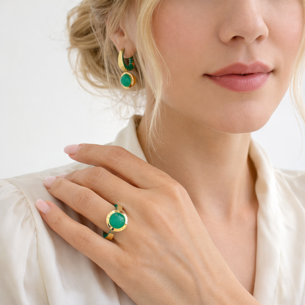 Кольцо с Хризопразом, Эмаль, R0178-22/20 — купить в Mousson Atelier | Каталог | Выбрать в Москве в магазине по адресу ул. Большая Дмитровка, 22 к.1