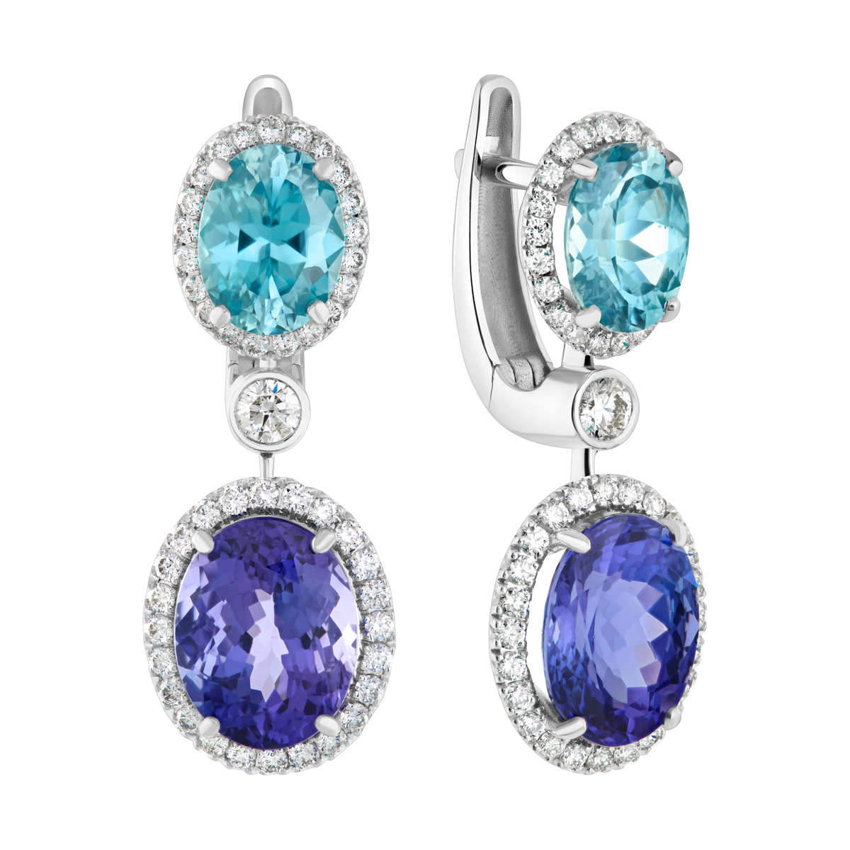 Серьги с Танзанитами, Цирконами и Бриллиантами, Е0022-2/1